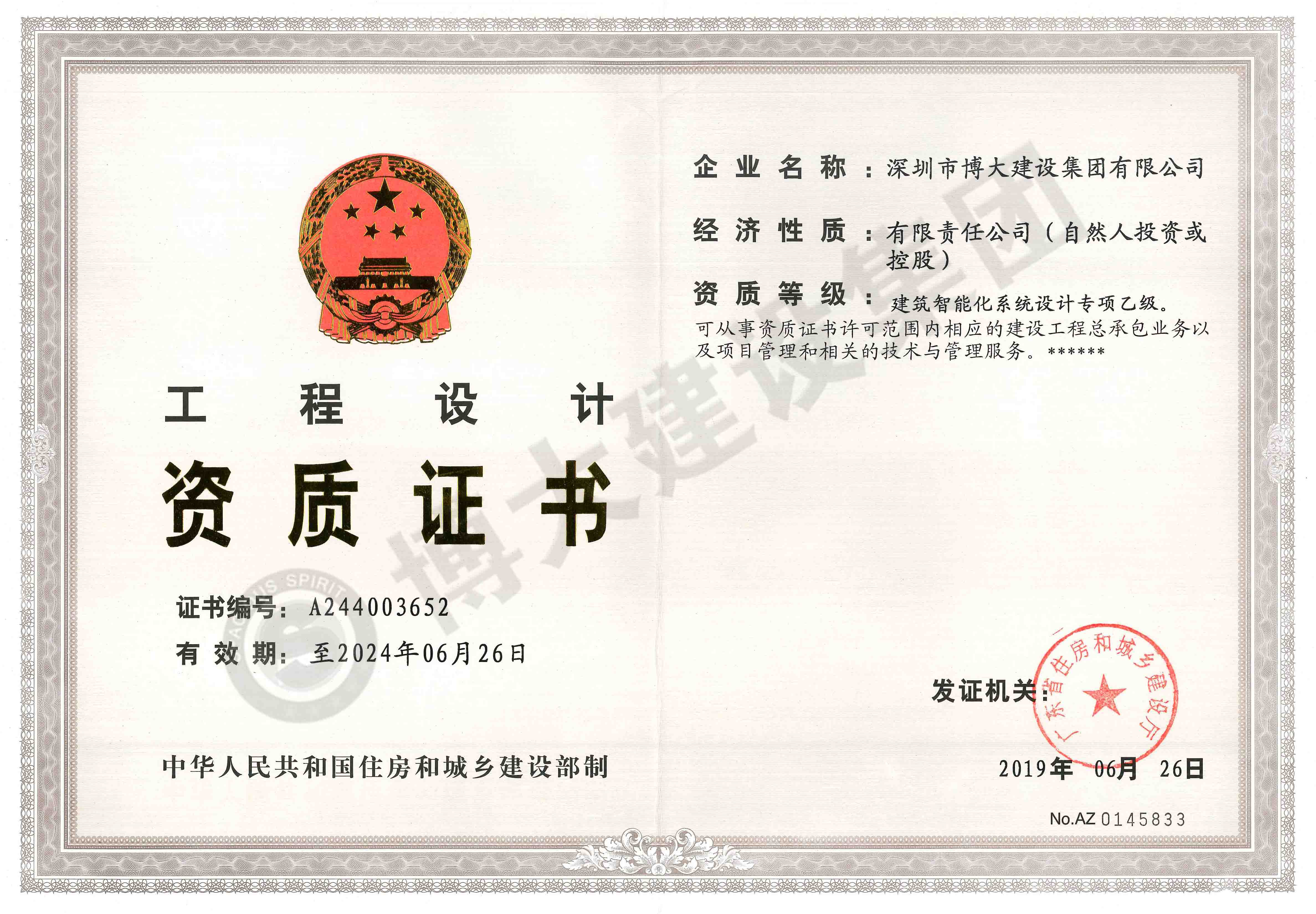 博大資質 | 喜獲建筑智能化系統設計專項乙級