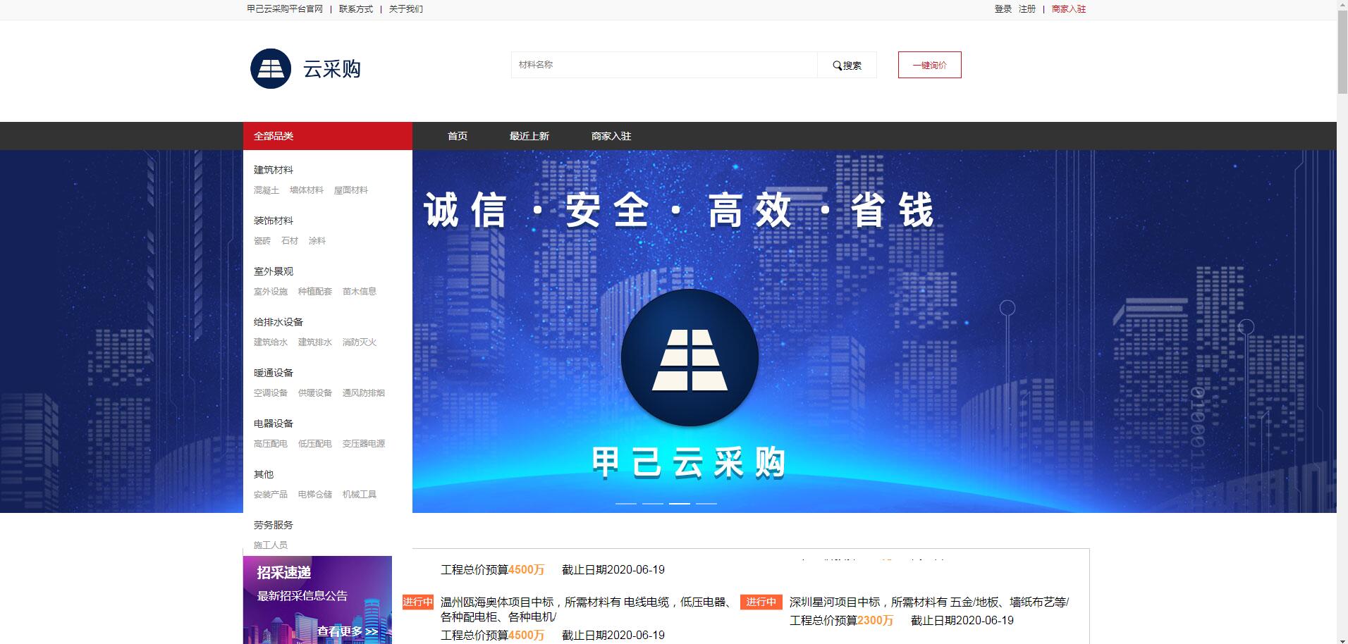 旨在提供“誠信經營、優質優價、方便快捷、安全透明”的一站式綜合采購服務,立志成為新時代最好的采購互聯網平臺! 一句話概括:甲己云采購就是建筑裝飾行業的“天貓” 甲己云采購平臺網址:https://ycg.jiaji16.com。